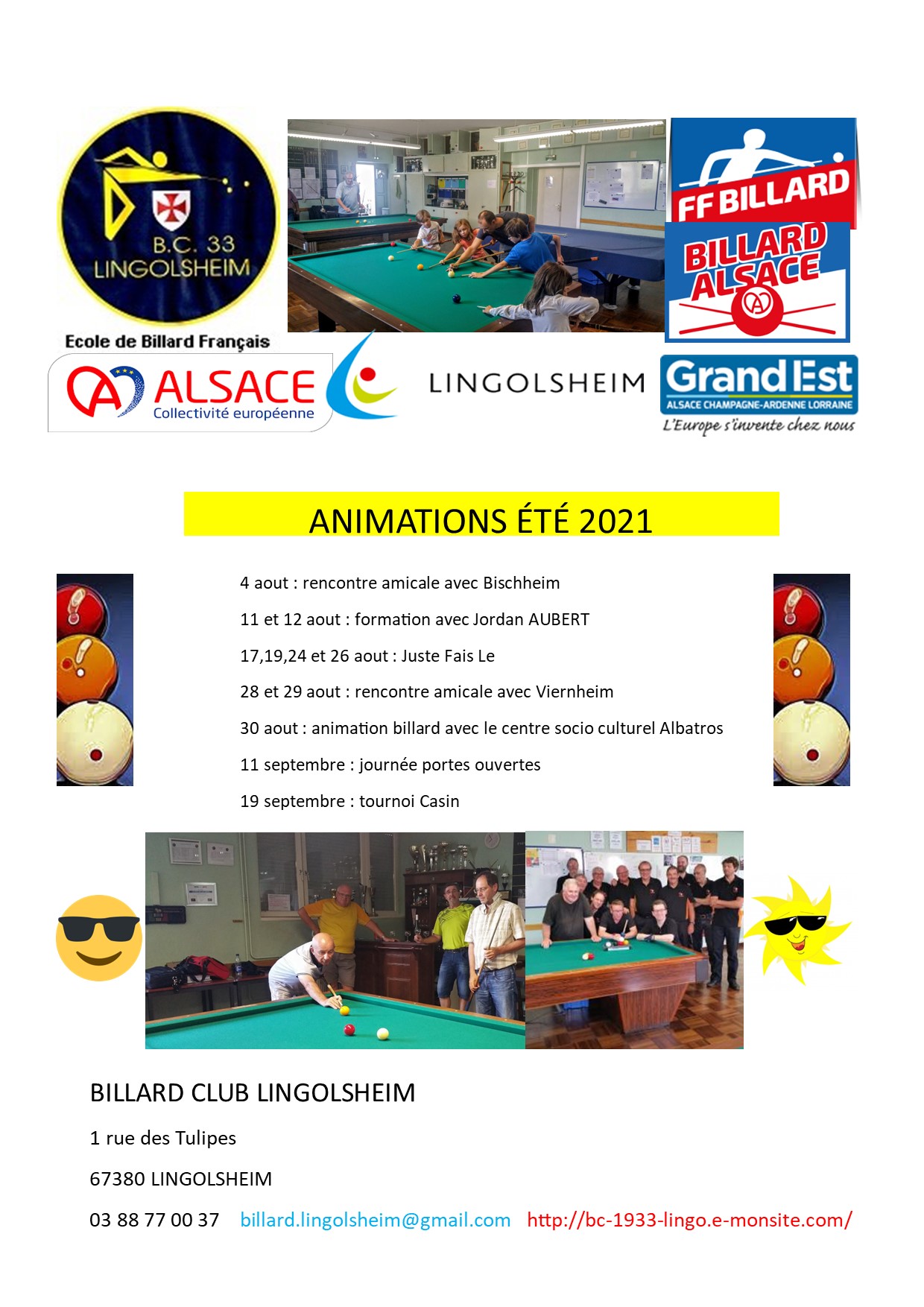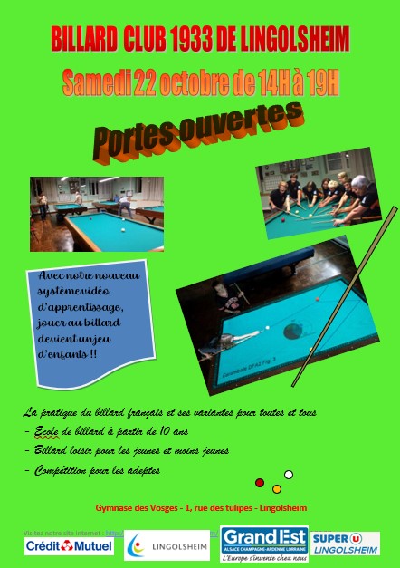 Voici toutes les informations sur le Club de billard Billard Club 1933 Lingolsheim qui ce trouve au 1 Rue des Tulipes, 67380 Lingolsheim (67). Sur cette fiche vous trouverez les photos, l'adresse, les horaires d'ouverture, le numero de téléphone et les avis clients.Vous pouvez églement rédiger un avis si vous le souhaitez en bas de page.